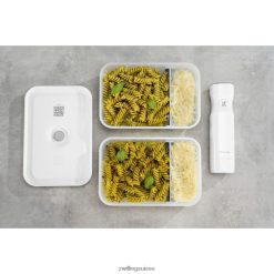 Les boîtes à lunch sous vide Fresh & Save sont conçues pour fonctionner avec la pompe à vide afin que vous puissiez déguster des aliments frais lors de vos déplacements. préparez des salades saines, des bols de céréales colorés ou de délicieuses soupes la veille ou même plusieurs jours à l’avance. la pompe à vide intelligente ralentit l’oxydation, de sorte que les salades restent croustillantes et vertes, les vitamines et les saveurs étant emprisonnées. Pour réchauffer, placez simplement les récipients extra-légers et incassables non scellés au micro-ondes. le séparateur de compartiment pratique inclus avec la boîte à lunch garantit que les aliments restent séparés, les gardant en parfait état des heures et des jours après avoir été emballés.