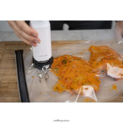 avec un set contenant six aides à la marinade au total, vous obtenez les petites et fines différences. lorsqu’il s’agit d’emballer des liquides sous vide, cela fonctionne tout simplement mieux avec une aide à la marinade : utilisée avec notre pompe à vide et nos sacs sous vide zwilling Fresh & Save, l’aide à la marinade garantit que la pompe n’absorbe pas les liquides si rapidement. les marinades ou les jus de viande restent dans le sac car ils s’accumulent dans l’aide à la marinade. cela protège la pompe à vide des dommages causés par les liquides et tout est exactement là où il devrait être.