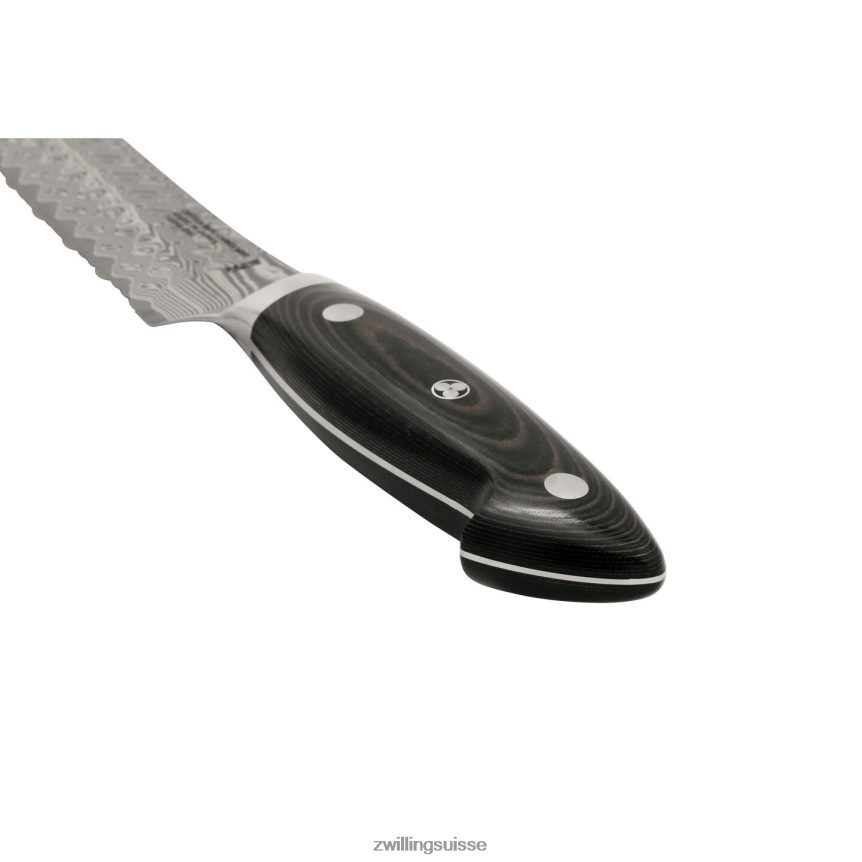 créée avec le maître forgeron Bob Kramer, la collection damas en acier inoxydable Kramer by Zwilling Euroline comprend des lames en acier inoxydable fabriquées selon ses normes rigoureuses, maximisant les courbes, l’équilibre et La conception d’utility.bob a une lame extrêmement large pour maximiser le dégagement des articulations pour les mains plus grandes et pour couper de gros produits et des tas de nourriture. les aliments hachés peuvent facilement être transportés grâce à cette lame large et impressionnante. Les couteaux sont finis à la main selon un processus traditionnel en 3 étapes par des artisans japonais qualifiés. Combinées à l’acier en poudre micro-carbure SG2, les lames cryodur durcies à la glace offrent un tranchant semblable à celui d’un scalpel, restent affûtées plus longtemps et peuvent résister à plus d’affûtage tout au long de leur durée de vie. le noyau en acier super sg2 est protégé par un chevron d d’une beauté exceptionnelle de 100 couchesmotif amascus, qui est complété par une superbe poignée en micarta en lin noir et une épingle en mosaïque signature Bob Kramer.