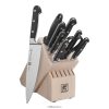 - Couteau à éplucher le bec d’oiseau de 2,75″, couteau d’office de 4″, couteau utilitaire dentelé de 5″, couteau de préparation à bord fin de 5,5″, couteau santoku de 7″, couteau à pain de 8″, couteau à pain de 8″ couteau de chef, cisailles doubles, acier double de 9″, bloc de rangement