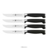comprend un couteau à éplucher de 3 pouces, un utilitaire dentelé de 5 pouces, un santoku à bord creux de 5 pouces, un couteau de chef de 8 pouces, des ciseaux de cuisine, un acier à aiguiser de 9 pouces et un bloc de bois à 16 fentes avec fentes pour couteaux à steak