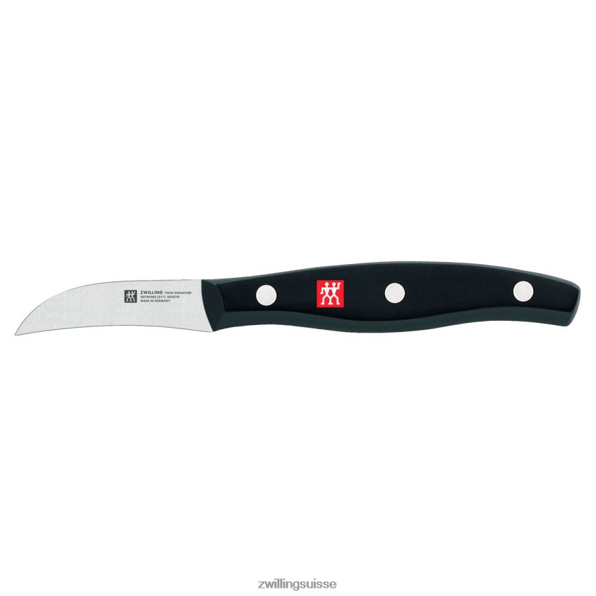équipez votre cuisine de deux couteaux signature en acier inoxydable. avec sa pointe pointue caractéristique qui s’incurve vers le bas, ce couteau est destiné à éplucher les fruits et légumes et à éliminer les imperfections. il est également idéal pour créer des garnitures décoratives.