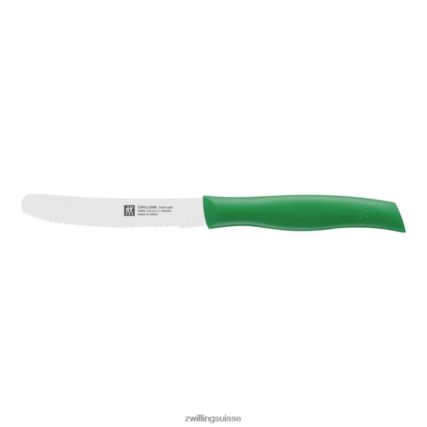 Le couteau utilitaire dentelé à double poignée de 4,5″ est idéal pour les tâches quotidiennes en cuisine. Fabriqué à partir d’acier inoxydable de haute qualité, la lame durcie à la glace offre une qualité supérieure. tranchant. la lame dentelée tranche en douceur les aliments durs à l’extérieur et mous à l’intérieur. coupe sans effort les tomates, les saucisses, le pain et le fromage, ce qui rend ce couteau polyvalent et léger parfait pour les pique-niques. le manche coloré et texturé est antidérapant et profilé pour une prise confortable et stable. Le travail de préparation est facile grâce à la double poignée.
