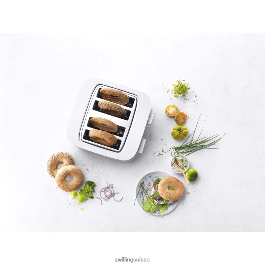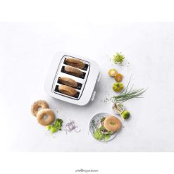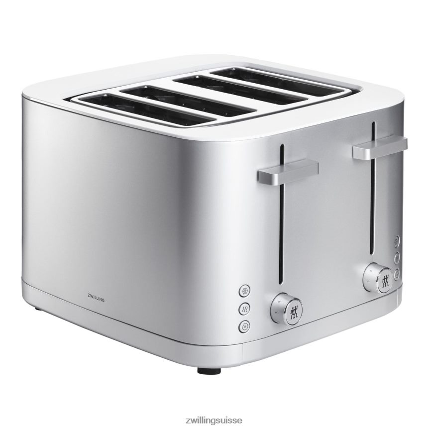 Le grille-pain Zwilling à 4 fentes garantit des toasts, des bagels, des muffins et bien plus encore dorés uniformément à chaque fois que vous l’utilisez. huit éléments chauffants séparés et une répartition équilibrée de la chaleur garantissent que chaque tranche de pain est grillée uniformément des deux côtés, même après des grillages répétés. le résultat : des toasts croustillants à l’extérieur et moelleux à l’intérieur. et une fois terminé, les toasts ne s’envolent pas du grille-pain. la fonction de levage doux garantit qu’il glisse doucement vers le haut et le levage supplémentaire intégré permet de retirer des tranches encore plus petites en toute sécurité. le nettoyage est un jeu d’enfant. les miettes finissent dans le tiroir à miettes qui coulisse pour un retrait facile.