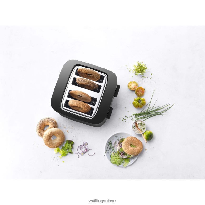 Le grille-pain Zwilling à 4 fentes garantit des toasts, des bagels, des muffins et bien plus encore dorés uniformément à chaque fois que vous l’utilisez. huit éléments chauffants séparés et une répartition équilibrée de la chaleur garantissent que chaque tranche de pain est grillée uniformément des deux côtés, même après des grillages répétés. le résultat : des toasts croustillants à l’extérieur et moelleux à l’intérieur. et une fois terminé, les toasts ne s’envolent pas du grille-pain. la fonction de levage doux garantit qu’il glisse doucement vers le haut et le levage supplémentaire intégré permet de retirer des tranches encore plus petites en toute sécurité. le nettoyage est un jeu d’enfant. les miettes finissent dans le tiroir à miettes qui coulisse pour un retrait facile. comme tous les produits enfinigy, le grille-pain 4 emplacements propose une application téléchargeable gratuitement. le code QR de l’application Zwilling Culinary World sur l’emballage du produit lance l’application afin que vous puissiez rechercher une base de données de recettes originales.