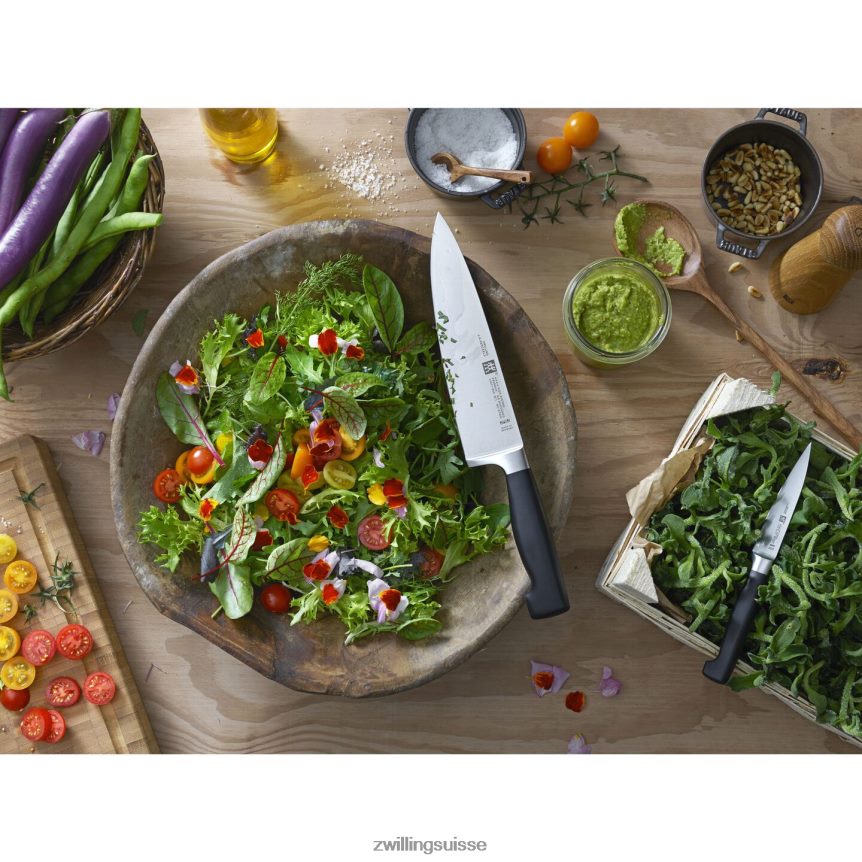 Les couteaux quatre étoiles sont fabriqués à partir d’acier à formule spéciale exclusive qui a été perfectionné depuis près de 300 ans. Combinées à la technique de durcissement à la glace signature de Zwilling, ces lames Friodur sont plus dures, plus tranchantes, elles ne tacheront pas et ne s’écailleront pas, et elles conservent leur tranchant plus longtemps. Forgés avec précision à partir d’une seule pièce d’acier, les couteaux sigmaforge ont une lame exceptionnellement robuste, équilibrée et flexible.